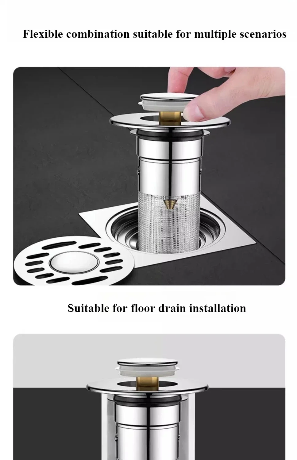 Universal Anti-Clog Pop-Up Drain Stopper – Stainless Steel Hair Catcher & Odor Filter for Bathroom & Kitchen Sink